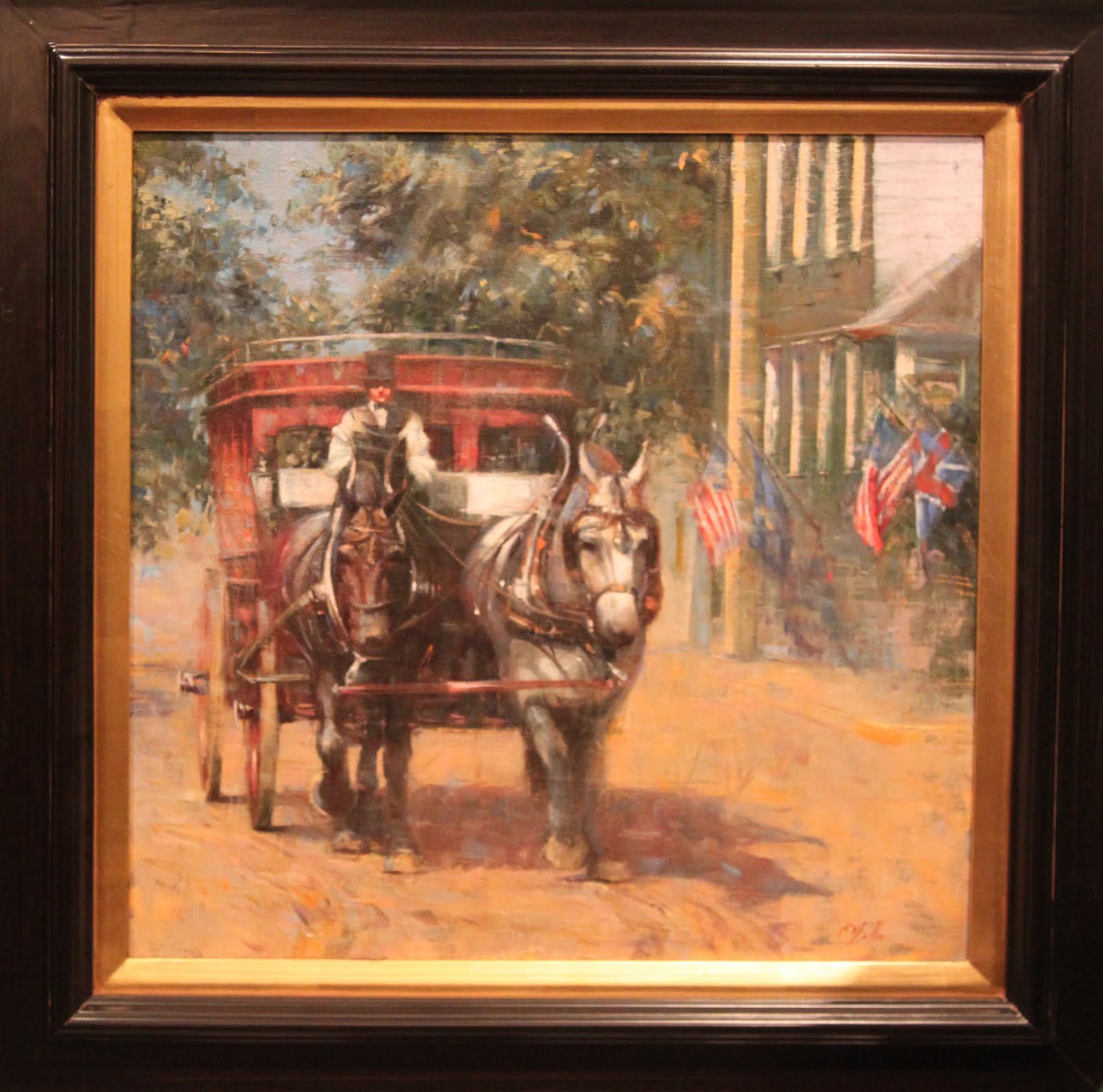 Elizabeth Pollie, an artist I've been following through Raymar and Fine Art Views Bold Brush online competitions, won Best in Show there for her painting "Grand Promenade." To the left is my snapshot of it -- her work. The photo's not great but the painting is. See more of her animal paintings, and horse and carriages on Elizabeth Pollie's web site: www.elizabethpollie.com/animals.html.